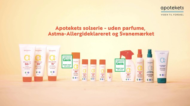 Apotekets solserie: Parfumefri, astma-allergideklareret og svanemærket produkter tilgængelige online med fri fragt på køb over 249 kr