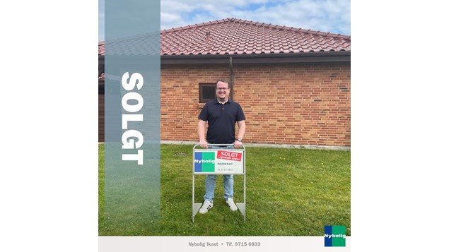 Dette flotte solgt-skilt pynter nu her på Henry Heerups Vej 14, hvor vi netop har solgt herligheden til nye ejere