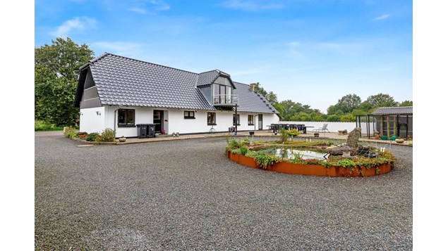Her får du 238 kvm bolig og 389 kvm udbygninger, der blandt andet består af en garage såvel som en hyggelig hytte i baghaven!