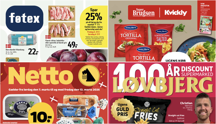 Føtex tilbyder flæsk i skiver, koteletter eller spareribs af dansk gris til en pris på 49 kr. for 800-900 g. Tilbuddet gælder fra fredag den 27. februar til torsdag den 12. marts.