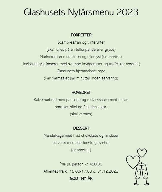 Så er Glashusets nytårsmenu klar til bestilling! 🎇