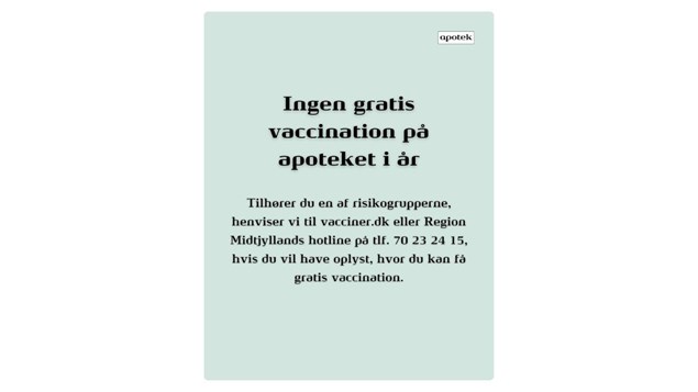 DU KAN IKKE BLIVE VACCINERET GRATIS PÅ APOTEKET I ÅR