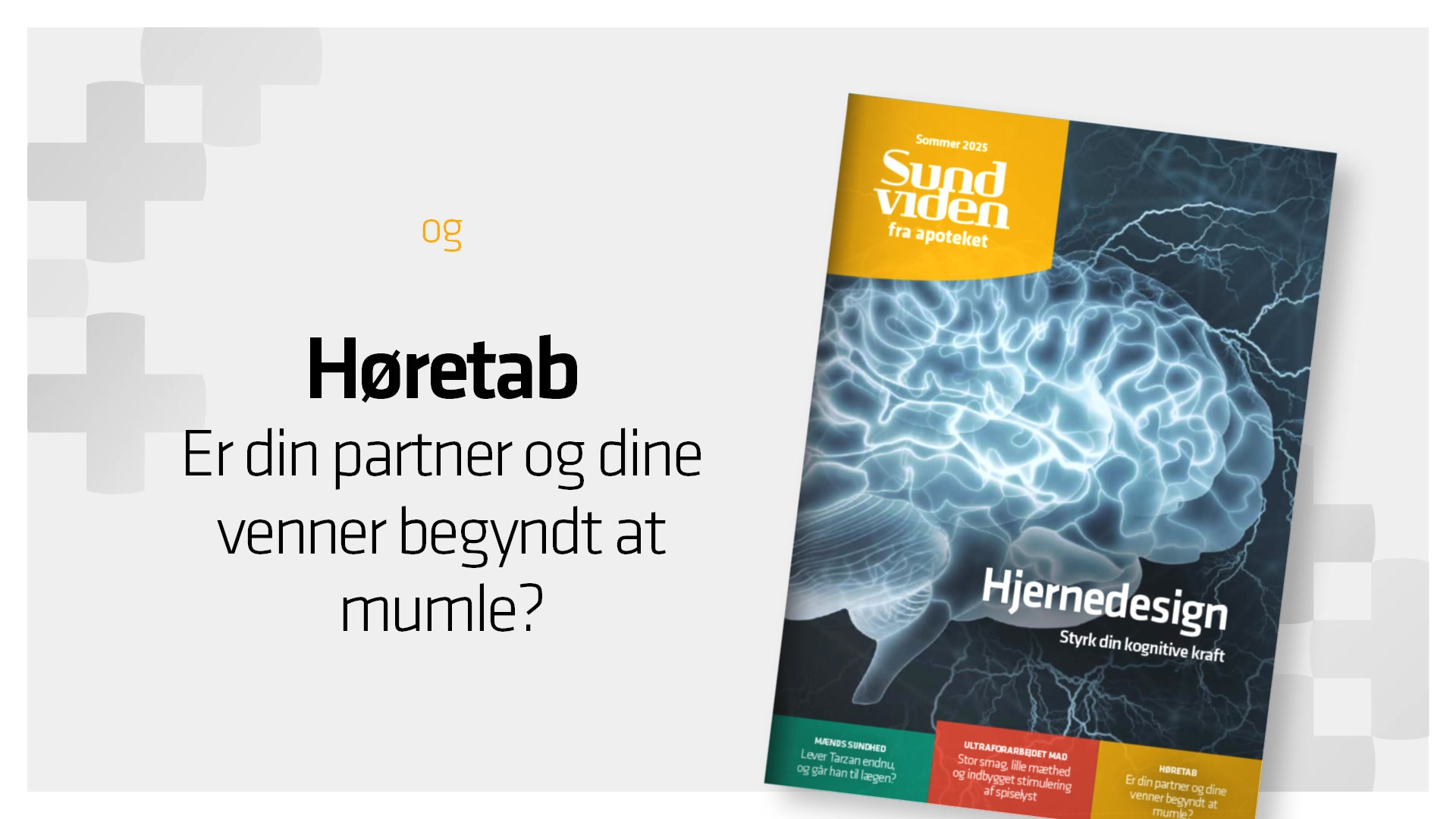 Find artikler om hjernedesign, mænds sundhed og høretab og bliv klogere på både sundhed og sygdom. Kom forbi dit lokale apotek og få det nyeste SundViden-magasin - helt gratis - eller find artiklerne på https://www.apoteket-online.dk/sund-viden