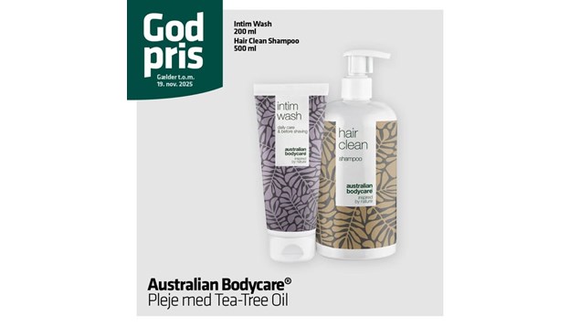 Har du prøvet den populære Hair Clean Shampoo fra Australian Bodycare? Produktet indeholder australsk Tea Tree Oil, der renser hovedbunden og hæmmer væksten af uønskede bakterier. De plejende olier efterlader håret blødt og velplejet, mens glycerin tilfører fugt og hjælper med at opretholde fugtbalancen!
