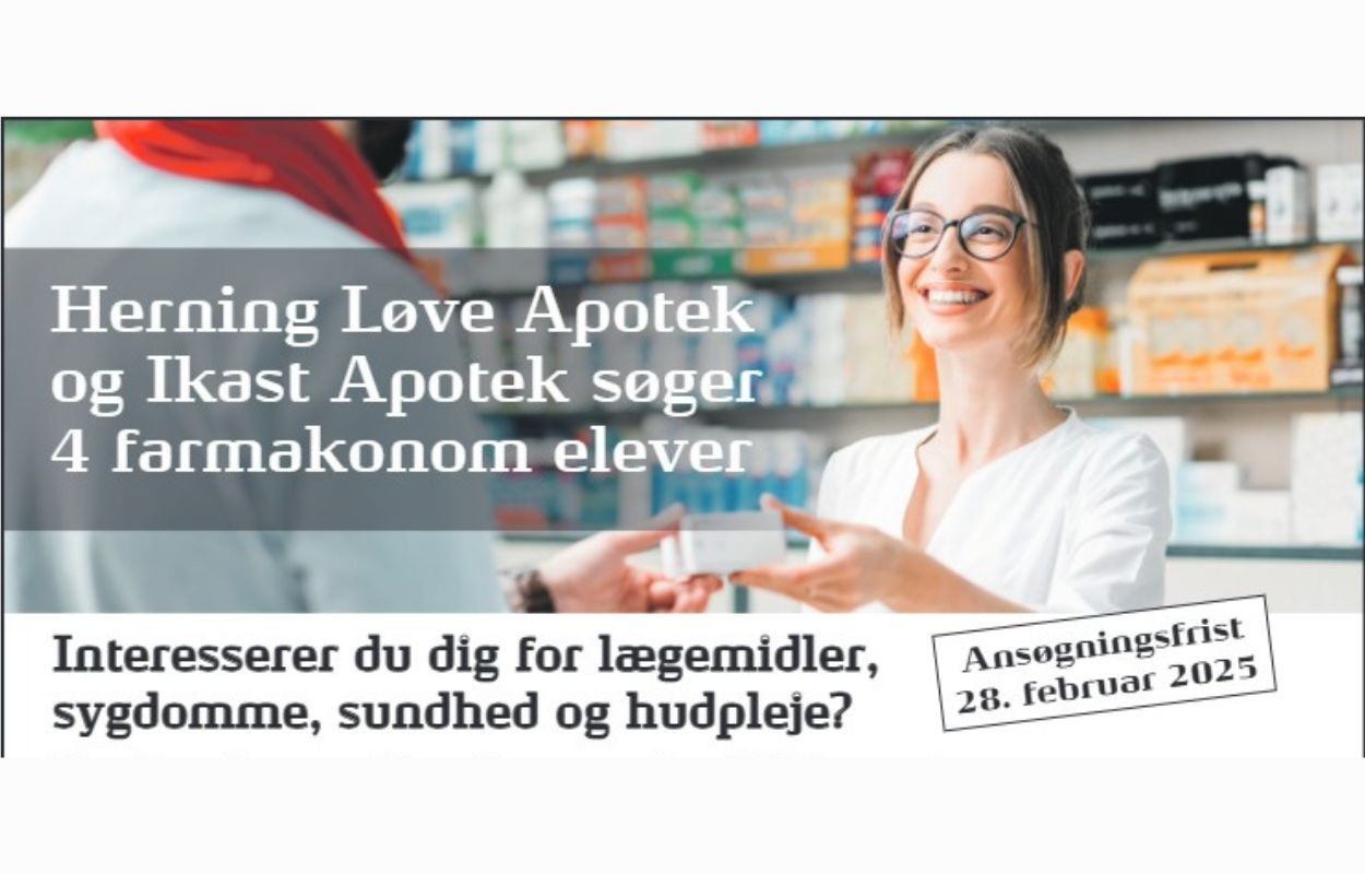 Drømmer du om en fremtid inden for sundhedssektoren? Ikast Apotek søger fire engagerede farmakonomelever med opstart den 1. september 2025. Uddannelsen varer tre år og kombinerer praktik på apoteket med skoleophold. Er du klar til at tage udfordringen op?