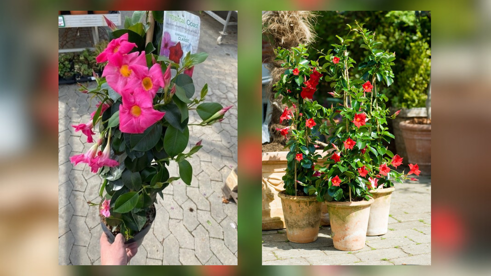 En af de smukke nyheder denne sæson er blomsten dipladenia – en sommerplante som pryder dine omgivelser fra april til efterår. Den fås i mange farver, hvor især rød og lyserød hitter. Denne plante trives bedst i stærk sol og varme, dog med rigelig vanding.