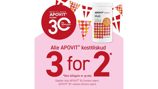 Tilbud på Apovit kosttilskud: Køb tre, betal for to på lokale apoteker og online