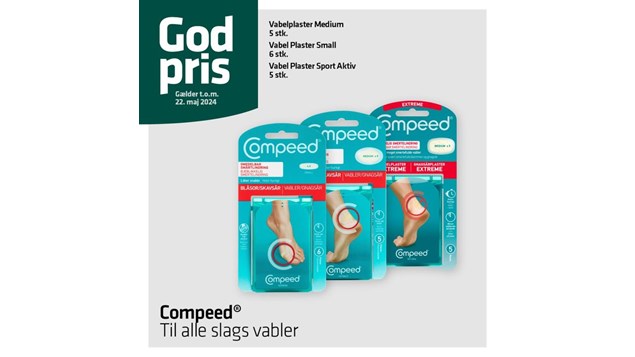 Lige nu kan du få Compeed til alle slags vabler til en ekstra GOD PRIS på dit lokale apotek og på Apoteket-online.dk. Se de forskellige varianter ved at følge linker herunder ↓